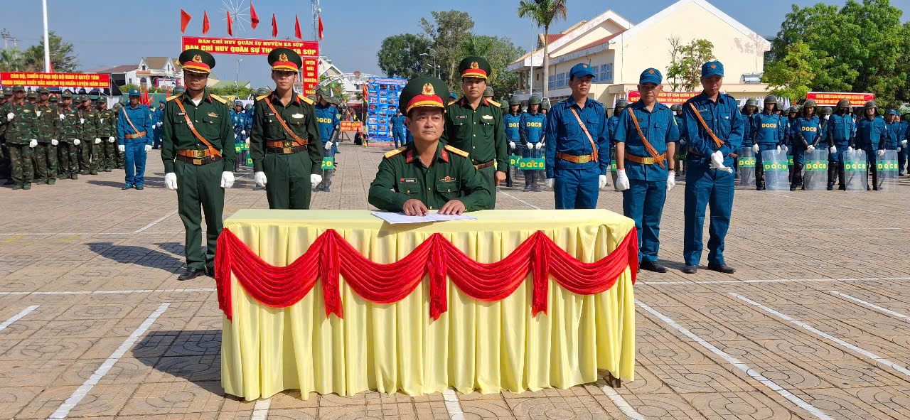 Sáng 03/3, UBND huyện Ea Súp tổ chức Lễ ra quân huấn luyện năm 2025 và phát động thi đua cao điểm “Thần tốc Quyết thắng”. Tham dự có Đại Tá Nguyễn Trãi – Chủ nhiệm chính trị Bộ Chỉ huy Quân sự tỉnh; đồng chí Đỗ Xuân Dũng – Phó Bí thư Huyện ủy, Chủ tịch UBND huyện; Thường trực HĐND, UBND huyện; lãnh đạo Ban Chỉ huy Quân sự huyện; lãnh đạo cấp ủy, chính quyền các xã, thị trấn, trường THPT Ea Súp; các cơ quan, ban ngành của huyện.